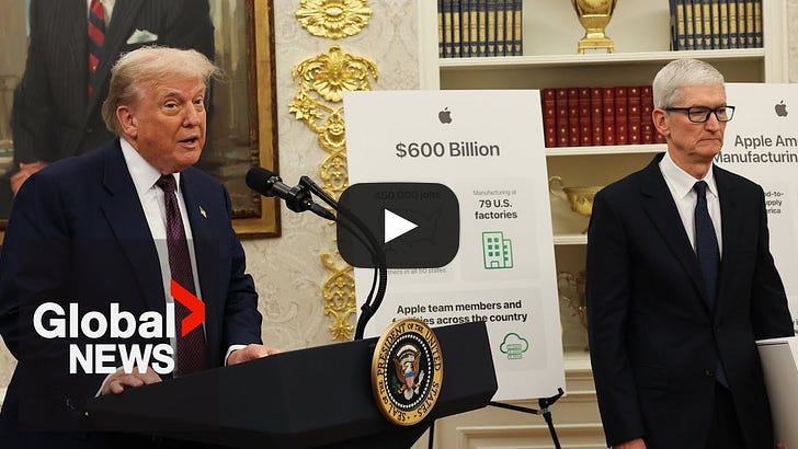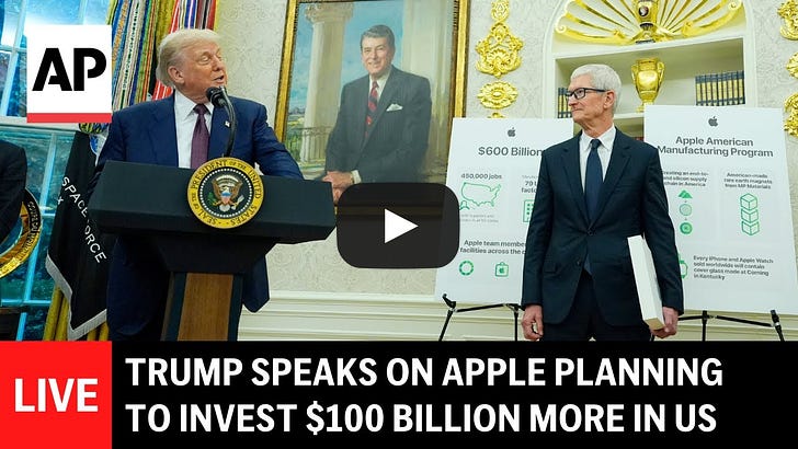 Apple CEO Tim Cook will join President Donald Trump at the White House to announce a new $100 billion investment commitment by Apple in U.S. manufacturing. The Oval Office event is scheduled for 1:30 p.m. PDT / 4:30 p.m. EDT. Watch live via any of the streams below: Support MacDailyNews at no extra cost to you by using this link to shop at Amazon. The post Watch Live: President Trump, Tim Cook announce Apple’s $100 billion investment in American manufacturing appeared first on MacDailyNews. You're currently a free subscriber to MacDailyNews. For the full experience, upgrade your subscription. |