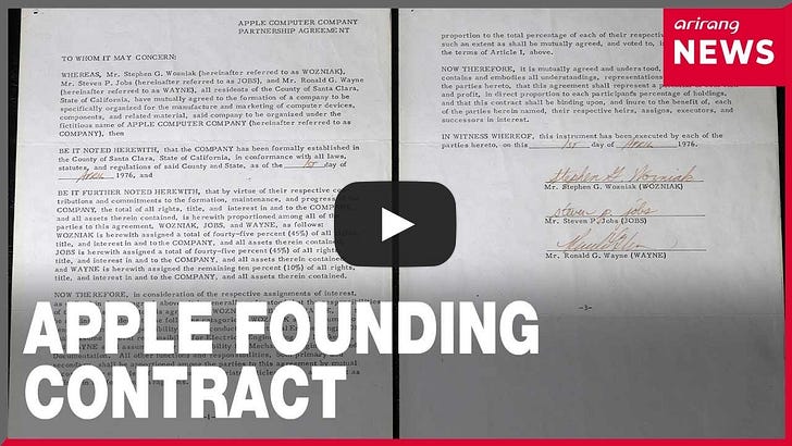In the annals of tech history, few stories rival the scrappy origins of Apple Inc. Picture this: It’s April 1, 1976 — April Fool’s Day, no les — and two Steves, Jobs and Wozniak, along with a third partner named Ron Wayne, are scribbling signatures on a three-page partnership contract in a nondescript room. That simple document birthed the Apple Computer Company, a venture that would go on to revolutionize personal computing, redefine entertainment, and propel a garage startup into a $4 trillion behemoth. Fast forward nearly 50 years, and those very papers are set to hit the auction block again, potentially fetching up to $4 million. At the heart of this auction lot is the original partnership agreement, a modest three-page affair typed up and signed by Jobs, Wozniak, and Wayne. It laid out the basics: 45% ownership for Jobs, 45% for Wozniak (the engineering wizard behind the Apple I), and a cautious 10% for Wayne, who handled the administrative and design side. But that’s not all. The package also includes the paperwork from Wayne’s swift exit—signed just 12 days later—where he cashed out his stake for a total of $2,300 ($800 upfront and $1,500 more shortly after). Ron Wayne. The unsung third founder whose decision to bow out remains one of Silicon Valley’s most tantalizing hypotheticals. In a recent reflection, Wayne himself summed it up perfectly: “I knew it would be a roller coaster, and that high-stakes ride wasn’t for me.” At 41 years old when Apple was formed, he was the elder statesman to the 21-year-old Jobs and 25-year-old Wozniak — experienced from stints at Atari and Hewlett-Packard, but wary of the volatility ahead. He worried about personal liability if the startup tanked, and with good reason: Early days were lean, funded by selling Jobs’ VW bus and Wozniak’s HP calculator. If Wayne had held onto his 10% stake through Apple’s meteoric rise (accounting for splits and issuances), it’d be worth around $409 billion. Wayne did cash in on memorabilia later—selling the contract copy for $500 in the 1990s and other items piecemeal, but he’s philosophical about it, often quipping that he’s “the luckiest guy who missed out.” This isn’t the first rodeo for Apple’s origin story at auction. Back in December 2011, Sotheby’s sold a similar set—including Wayne’s withdrawal docs — to a private collector for a cool $1.6 million. That buyer, it turns out, is circling back to Christie’s on January 23, 2026, to let the lot go as a single package. Experts peg the value at $2-4 million, a testament to how Apple’s cultural cachet has only grown. These papers aren’t just relics; they’re the seed of a company that’s woven itself into the fabric of modern life. MacDailyNews Take: Apple didn’t start with venture capital war chests or unicorn valuations — it started with three guys pooling dreams in a Los Altos garage. Jobs’ charisma, Wozniak’s genius, and Wayne’s prudence formed a perfect, if fleeting, storm. It’s a narrative that inspires every bootstrapped founder today: Success isn’t predestined; it’s forged in unlikely alliances and tough calls. Support MacDailyNews at no extra cost to you by using this link to shop at Amazon. The post Apple’s founding papers head back to auction, could fetch $4 million appeared first on MacDailyNews. You're currently a free subscriber to MacDailyNews. For the full experience, upgrade your subscription. |